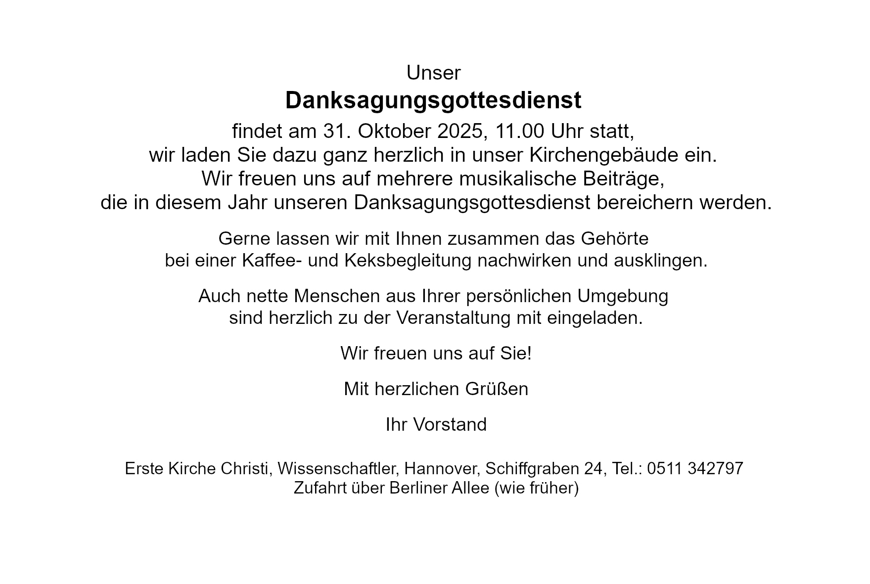 Dankgottesdienst in der Ersten Kirche Christi, Wissenschaftler, Hannover